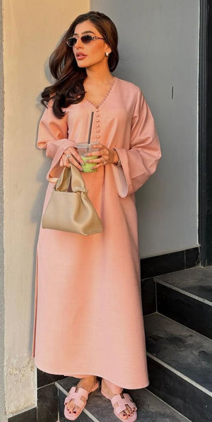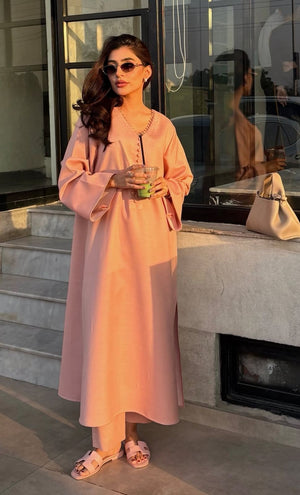Embrace effortless elegance with Peachy Keen, a masterclass in understated luxury. Crafted from premium, breathable Karandi fabric, this set is designed for the woman who values both comfort and a high-fashion silhouette.