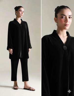 Elevate your winter wardrobe with HU Studio's "Deep Sapphire" Ensemble, expertly crafted for sumptuous warmth and refined elegance. This carefully designed set features rich, plush navy velvet in a stylish tunic-and-trouser silhouette, providing both exquisite comfort and subtle, sophisticated detailing for the colder months. Perfect for a refined evening affair or an elegant winter gathering, it offers essential versatility and a lustrous, deep-pile texture that ensures a polished and luxurious presentation effortlessly.